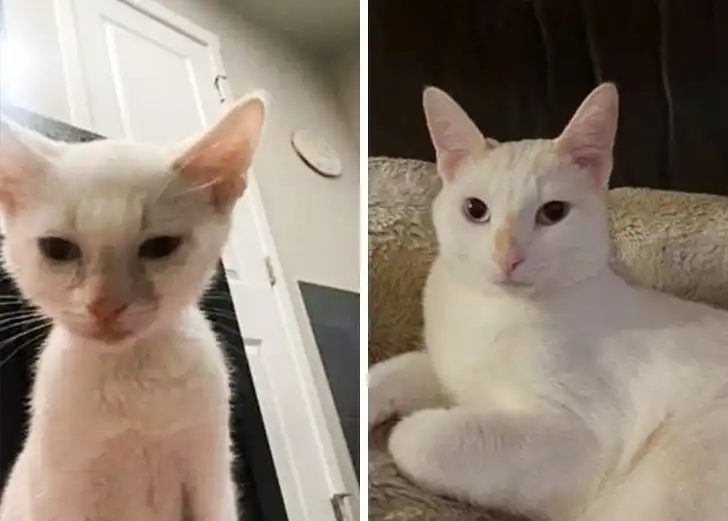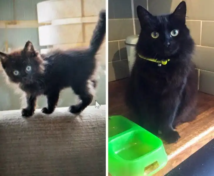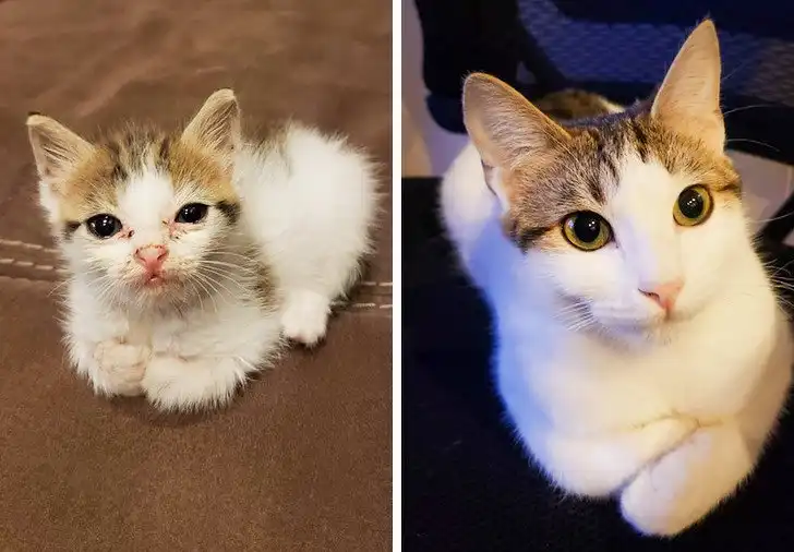 «Нашел эту юную леди на парковке, всю в блохах и с травмированной лапой, она сильно плакала. На втором фото — она же спустя 3 месяца и 2 операции»