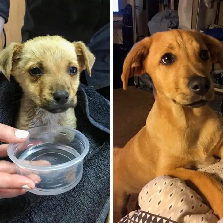 «Слева моя малышка, когда мы нашли ее в коробке на дороге, а справа — она 3 года спустя»