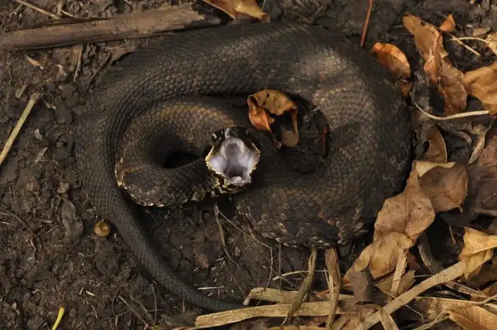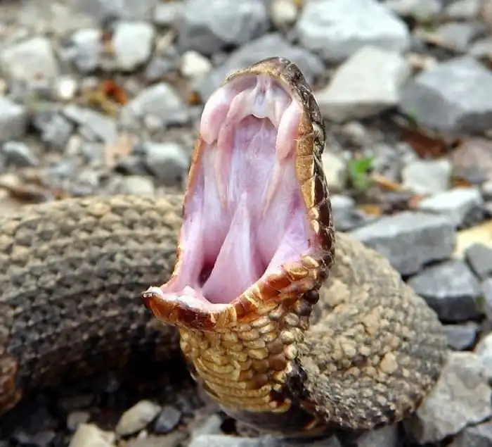 В США, например, живёт водяной щитомордник — «рыбоед». Животина освоила рыбацкую науку. Свой жёлтый кончик хвоста она использует как приманку. Ах да, чуть не забыла сказать, его яд настолько жёсткий, что буквально разъедает ткани кожи. Зафиксированы случаи, когда человеки лишались из-за укуса гадины конечностей.
