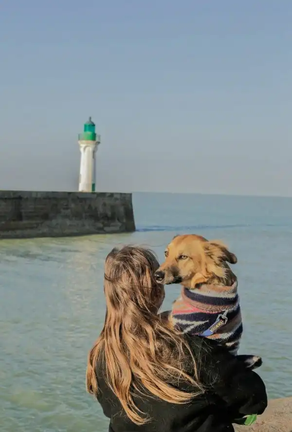 Когда Розанна ван Зантен взяла из приюта собаку Тофу, она думала, что после заключения в четырех стенах ее новый питомец будет с удовольствием ходить на прогулки. Однако все оказалось не так просто. "Тофу всего боялась и предпочитала сидеть дома, а на улице от страха старалась запрыгнуть ко мне на руки", - говорит Розанна. Чтобы избавить Тофу от страха, Розанна стала приучать ее к прогулкам, нося на руках.