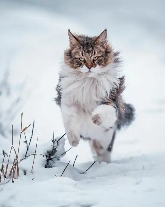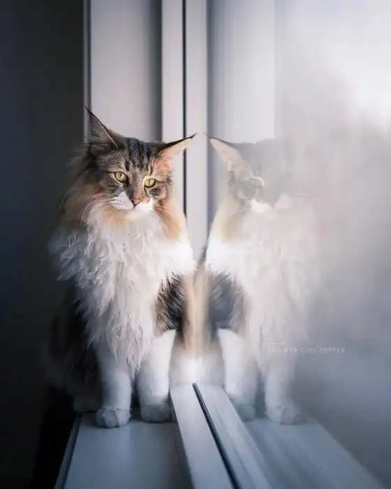 Жительница Норвегии по имени Камилла два года назад завела котенка породы норвежский лесной. Малыш, искавший постоянный дом, был просто неотразим, и Камилла взяла его ни секунды не думая. Котенка назвали Пеппер и завели ему Инстаграм, чтобы было куда выкладывать фотографии. Посмотрите, в какого великолепного котяру он превратился сегодня! Примерно через полгода после появления в доме Пеппера Камилла и ее муж решили найти своему питомцу какую-нибудь компанию. Ею стала крошечная голубоглазая бенгальская кошка. Ей было 6 месяцев и ее назвали Чили.