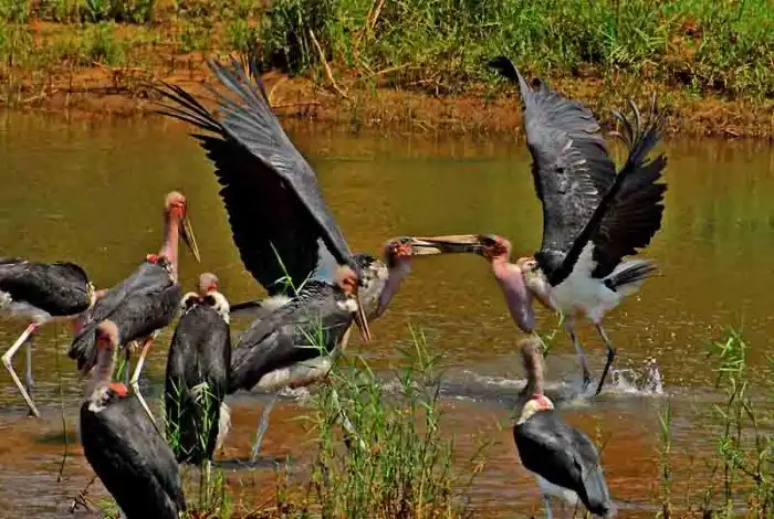 Взрослых фламинго марабу есть тоже не чураются.