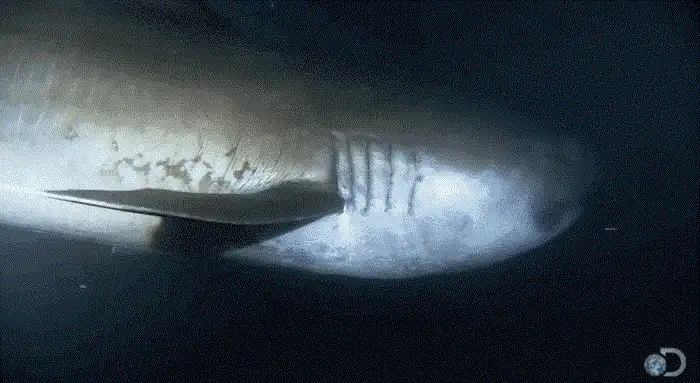 Чтобы приманить рачков-дурачков, акула намалевала свои губы фосфором. Криль, аки морской мотылёк, плывёт на свет, после чего бесследно пропадает в бездонной пасти. Поэтому не ссы в трусы, людей наша героиня не ест, легенды всё врут. Тем более на глубине 500-3500 м человеки не плавают. А вот большеротая акула ещё как.