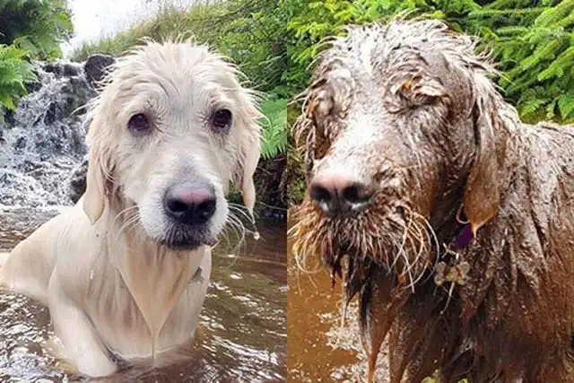 Существует стереотип, что с собакой нужно гулять на поводке – так она никуда не убежит, ни на кого не нападет, и не изваляется в грязи. Похоже, эти хозяева решили пренебречь правилам, за что и поплатились после.