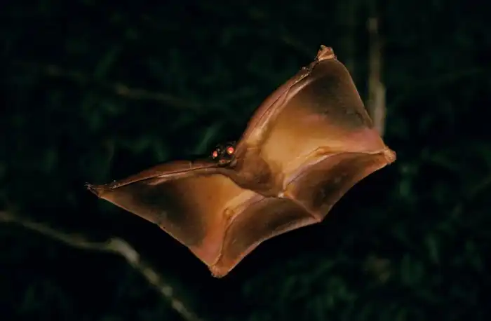 Ладно, полноценными крыльями это не назовёшь, летать наш герой не умеет. Но всё тело животины, от головы до хвоста — один большой парашют, на котором зверёк может пролететь 140 м за раз и 1,5 км за ночь! Так недоделанный бэтмен перемещается от дерева к дереву в поисках всевозможных ништяков: фруктов, листьев и даже цветочков.
