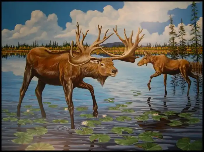 С таким чётким инструментарием олень-лось доминировал не только над местной фауной, но и флорой! Животина без труда валила мелкие деревья, изменяя ландшафт Северной Америки также как это делают слоны!
