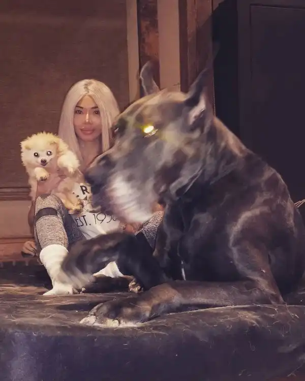Со стороны кажется, что это фотошоп, но глаза вас не обманывают. Размеры пса подчеркивает еще и маленький рост хозяйки - всего 153 сантиметра.