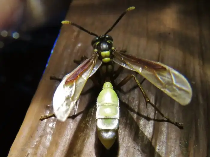 Эти желтопузые ребята живут в тропических лесах и болотах Центральной и Южной Америки. По сравнению с нашей осой, которая еле еле дотягивает до 2 см, южноамериканская жужалка будет побольше, средние размеры рабочей особи 3-4 см.
