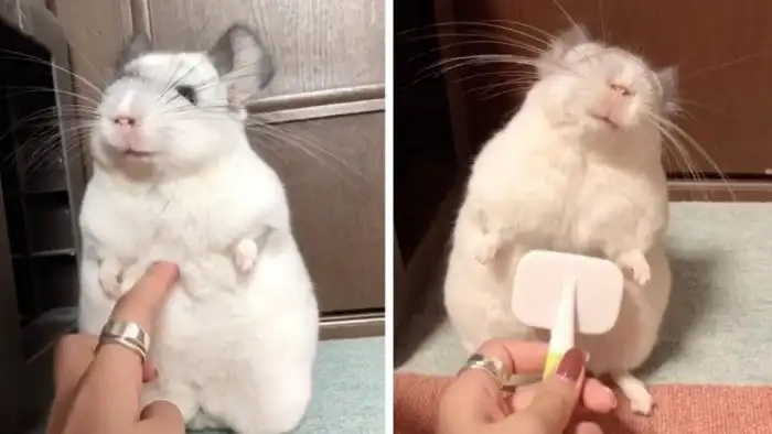 Шерсть шиншилл мягкая, густая и настолько плотная, что паразиты в ней не заведутся ни при каких условиях — им там будет слишком тесно, как в гипермаркете со скидкой на гречу после объявления карантина. Ведь из 1 луковицы растёт 60-80 тоненьких волосков! Это и делает зверушку такой плюшевой.