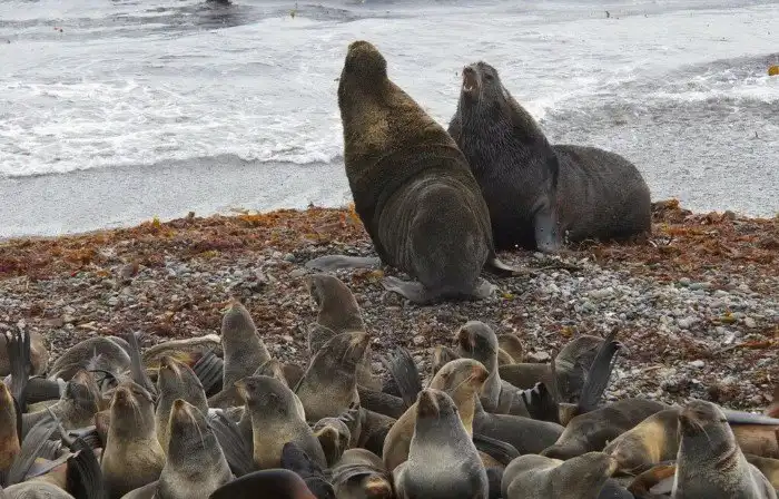 Как видите, морской котик в несколько раз меньше сивучей. Но свои территории он отбивает ловкостью численностью. Обычно на 1 сивуча нападает сразу 2-5 котиков.