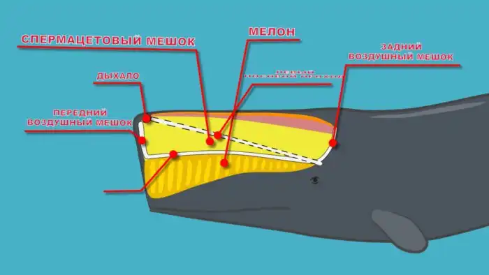 Ещё один девайс, который позволял терроризировать жителей океана — гигантский спермацетовый мешок. Нет, с размножением этот заветный кулёчек никак не связан. Спермацетовый мешок — орган, благодаря которому дельфины, косатки и прочие китообразные могут в эхолокацию. Он воспринимает звуковые сигналы как радар, поэтому все китообразные видят картинку объёмной проекцией. Так что от исчадия морей не спастись и не скрыться, куда бы ты не прятался.