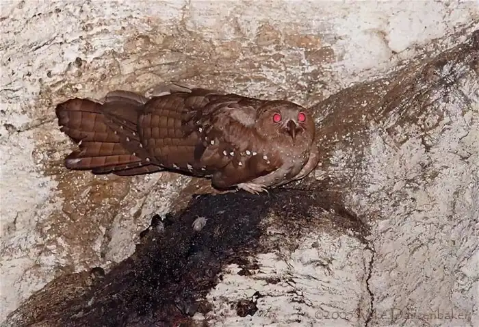Обосновались пичуги на севере Южной Америки. Размером птахи с ворона — длина тела 55 сантиметров и размах крыльев в 1 метр. Они — крупнейшие представители отряда: даже исполинский козодой уступает в размере пещерным собратьям. Но жирными их назвали не из-за этого.