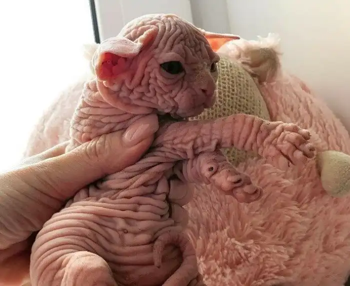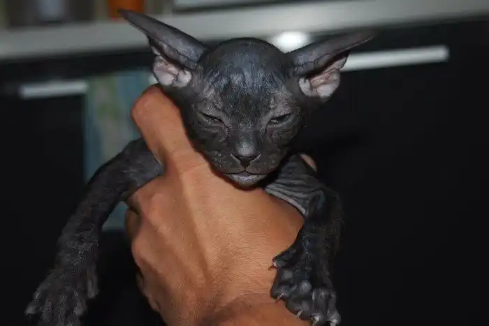 На конвейер кошаков поставили лишь в 20 веке. В результате мы имеем целых три разновидности голых кисок: канадских, донских и петербургских. К слову, назвать сфинкса полностью голым нельзя. Ведь любая лысая кошка — сфинкс, но далеко не любой сфинкс лысый.