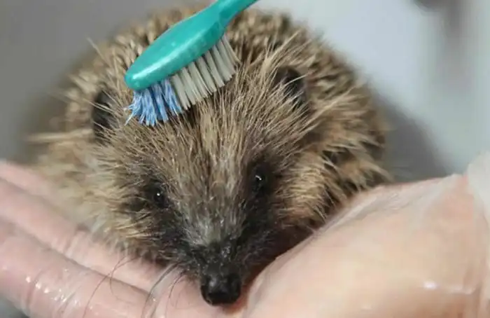 Так как иголки - это жёсткие волосы, расчесывая их ёжу, он расслабляется и ему становится приятно.