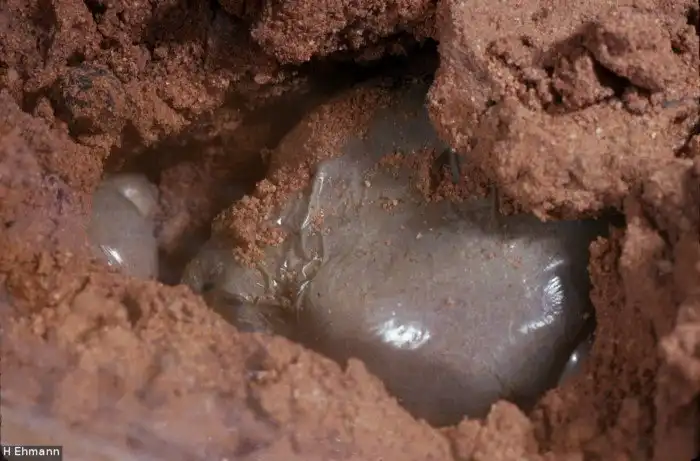 «Накачав» своё тело водой до отказа (масса «запасной» воды иногда в полтора раза превышает массу тела!), в конце сезона дождей лягушка закапывается глубоко (до 1 метра!) в землю и выделяет липкую слизь, которая, смешиваясь с песком, образует плотный водонепроницаемый кокон. Затем животное впадает в спячку – в этом состоянии лягушка может спать, не есть и не пить, до пяти лет! Однако как только она «почувствует» сильный дождь, то прогрызает кокон, выкапывается наверх, и начинает прыгать, охотиться, размножаться.