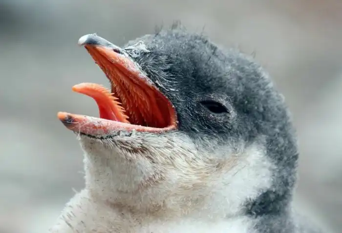 Пингвины заглатывают рыбу целиком, поэтому зубья во рту расположены у них по направлению к глотке.