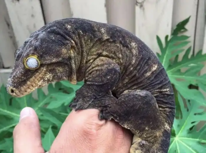 Из-за того, что глаза рептилии приспособлены к ночному образу жизни, на свету их зрачок сужается настолько, что кажется, будто у них его нет вообще.