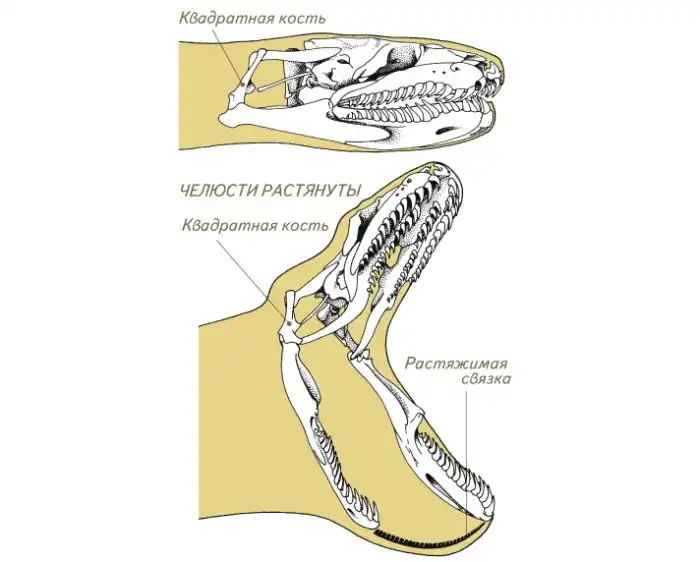 Да в документалках мы нередко наблюдаем, как змея запихивает в себя добычу в несколько раз больше её собственной пасти. Как же у неё так получается?