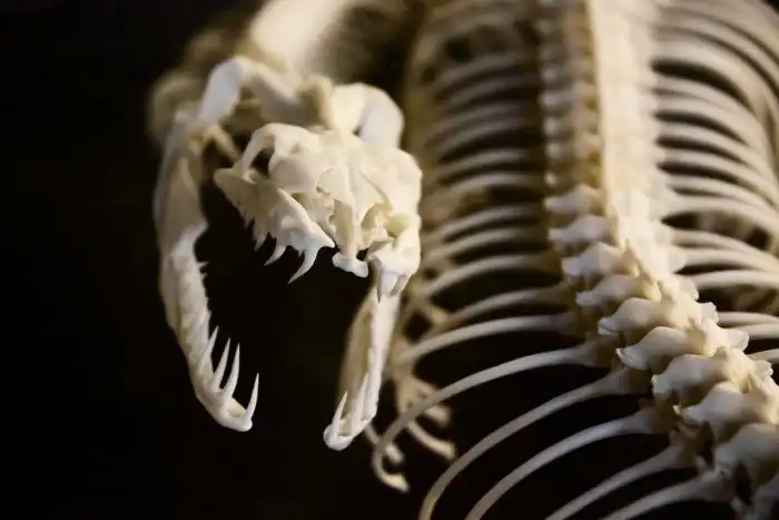 Ответ кроется в совершенно уникальной анатомии и строении челюстей. Со стороны выглядит, что змея, как огромный чулок, натягивается на свою добычу. Тем временем ее нижняя челюсть выдвигается вперед и... делится надвое!