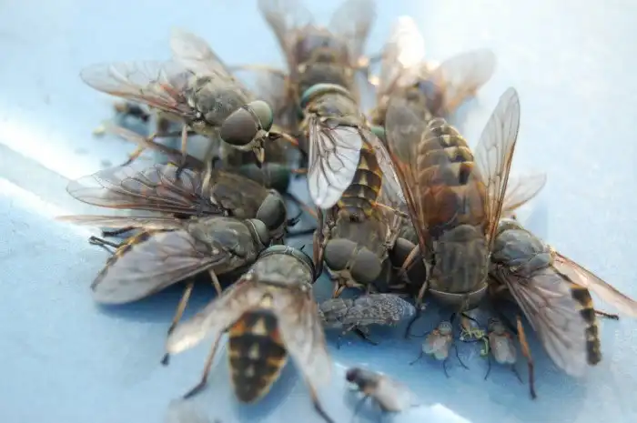 Некоторые животные, изведённые слепнями, звереют настолько, что в панике бегут в леса, чтобы сбить мух ветками деревьев. Из-за этого лошади и коровы теряются.
