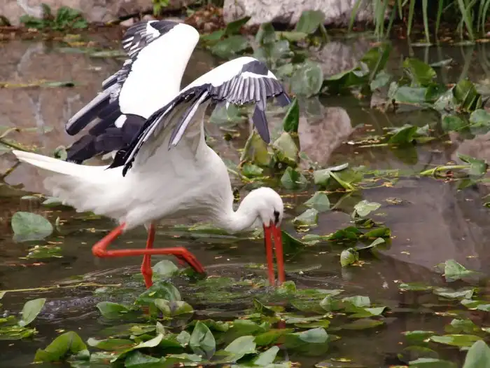 Белый аист — болотная птичка из семейства Аистовых. Пернатый вырастает до 100-120 сантиметров при размахе крыльев в 2 метра и весе в 4 кило. БОльшая часть роста приходится на ноги. Такие ходули прекрасно подходят для того, чтобы расхаживать по топям и болотам в поисках еды.
