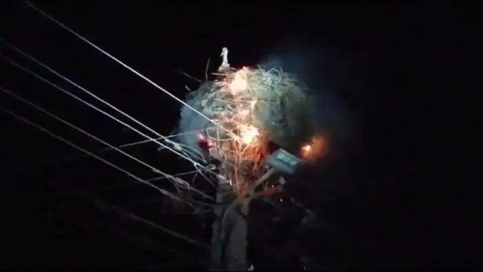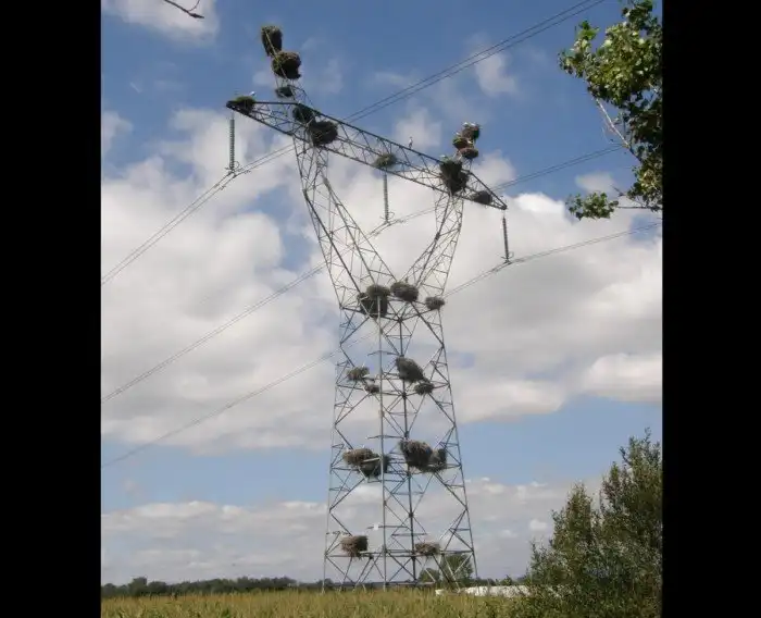 Чтобы такого не происходило, электрики каждый год делают под гнездами каркас, который не даёт постройке задевать провода. Так птицы продолжают гнездиться на насиженном месте и при этом остаются в безопасности.