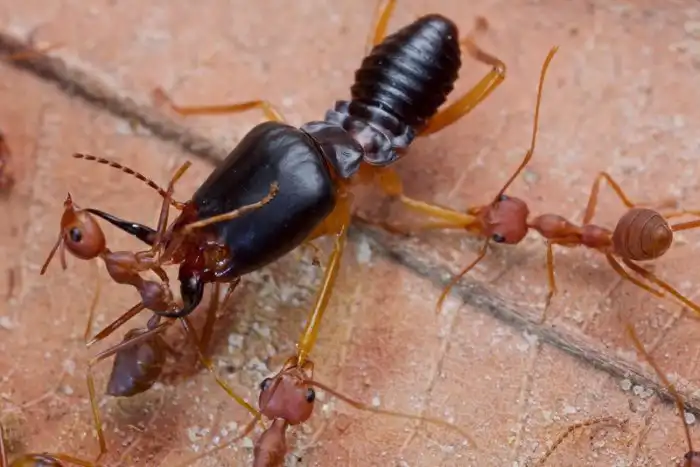 Жизнь термита-солдата тоже сладкой не назовёшь. Им плевать кто ты: гигантский муравьед или муравей — если ты посягнул на безопасность колонии, орда членистоногих безропотно пойдёт на смерть, чтобы покарать обидчика гигантскими жвалами. Их оружие настолько огромно, что бедняги даже покушать самостоятельно не могут! Особо жестокие битвы термиты ведут против… других термитов. Конкуренция за ресурсы приводит к грандиозным сражениям, где счёт жертв с обеих сторон идёт на сотни тысяч.