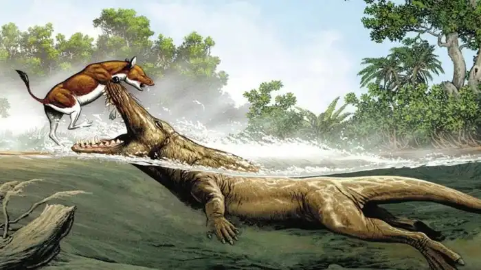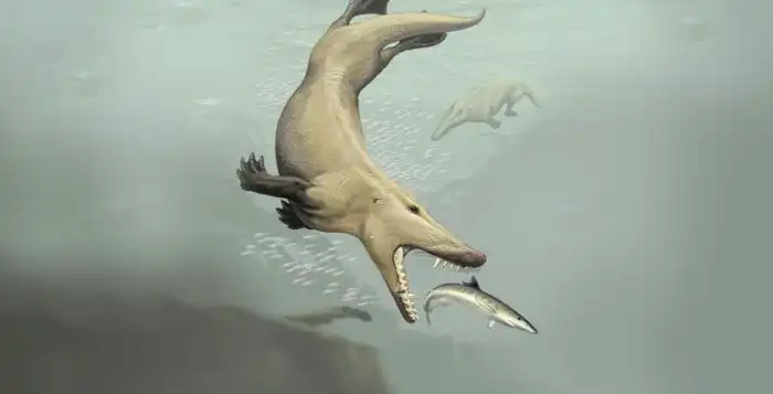 Но своим зубальником амбулоцет делал не только кусь. Нижняя челюсть была для зверя вторыми ушами, так как первые на суше почти ничего не слышали. Прижав голову к земле, животинка улавливала костями черепа вибрации окружающей среды. Так ходячий кит понимал, что еда ходит где-то рядом и в нужный момент атаковал. Или сваливал — прийти мог и хищник покрупнее.