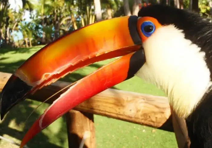 Базовые характеристики пернатого не больно впечатляют: 30-50 сантиметров в длину, полкило веса, куцые крылышки и скромный чёрно-белый наряд. И был бы тукан ничем не примечательной птичкой, если бы не огромное яркое НО у него на лице.