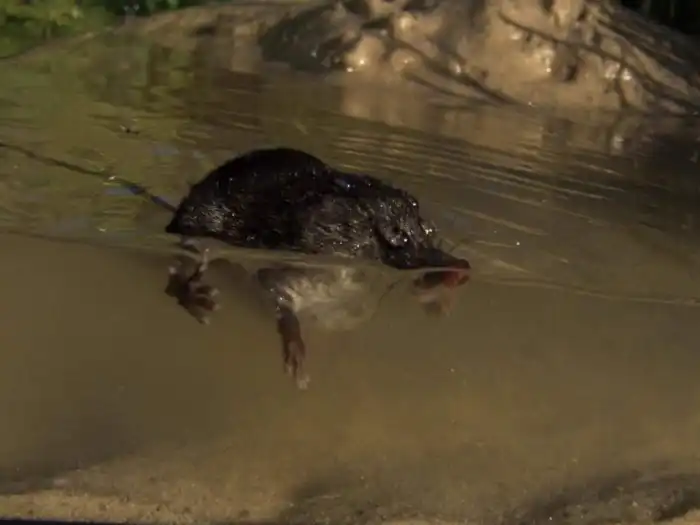 Так что выхухоль — офигительный пловец. Конечно, не Майкл Фелпс, но за минуту чертила преодолевает 30 метров под водой, а в случае необходимости зверек спокойно продержится и 3-4 минуты не всплывая, что для животин её размеров — вечность.