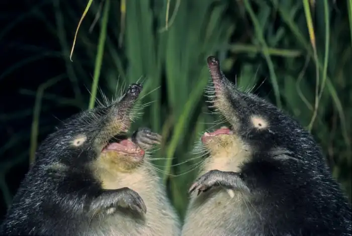 Зато животинка прокачала осязание и обоняние на максимум. Земную добычу: лягушек, личинок и червей зверь находит по запаху, а геолокацию подводных обитателей: пиявок, насекомых и даже мелких рыб выхухоль определяет с помощью вибриссов, или, проще говоря, усов. Осязательные волоски выхухоль отрастила себе на лапках и мордочке, так что скрыться от слепыша сложно даже на дне водоёма.