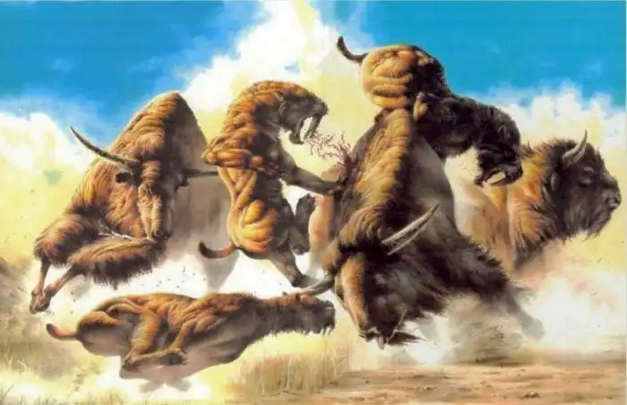 Каким бы большим и сильным ты ни был, идти на мамонта в одиночку — самоубийство. Поэтому предполагают, что большие саблезубые кошки жили стаями или прайдами, как современные львы.