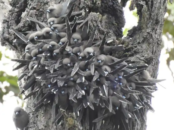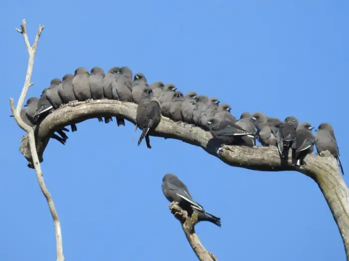 Зато со своими корешами птичка на короткой ноге. Пернатые образуют многочисленные стаи, настолько дружные, что даже спят они вместе. Устроившись на каком-нибудь дереве, артамы ночуют большой кучей до трех десятков особей! Но зачем?