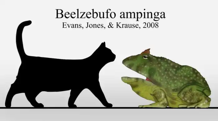 Для начала уточним, жаба дьявола, на самом деле, нифига не жаба — а лягушка. Даже несмотря на имя нашей героини — Beelzebufo, которое дословно переводится на русский, как «жаба-Вельзевул». В заблуждение учёных ввели гигантские размеры земноводного и непропорционально маленькие лапки, явно не приспособленных для прыжков. Потому не-жаба сначала и была причислена к жабьему народу. Ошибку, конечно, исправили, но название оставили прежним.