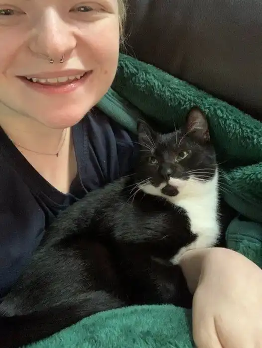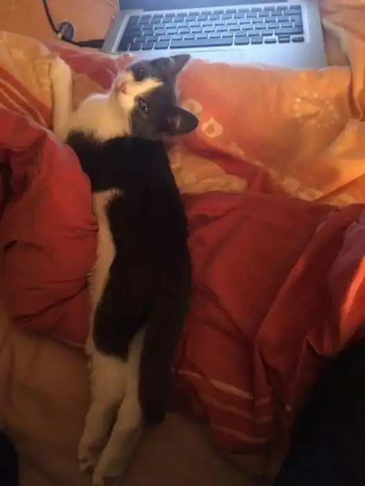 Хозяйка рассказывает, что её кот был последним из помёта, который обрёл дом. Всё дело в том, что он был очень застенчивым и робким. Возможно, в этом и была причина того, что его не выбирали. Но теперь он не оставляет девушку в одиночестве. А может, он просто ждал свою одну единственную?