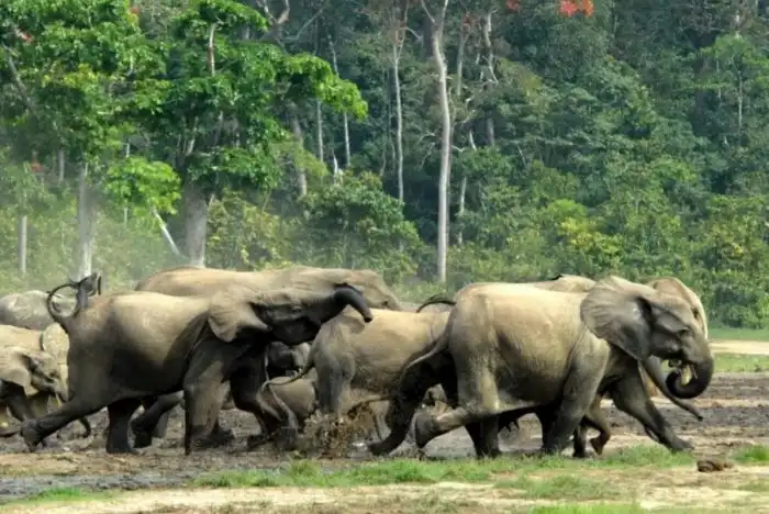 А еще лесной слон настоящий хозяйственный деятель, оставляющий после себя цветущие сады. Пройдя по пищеварительному тракту, семена растений, которые слон съел за день, выводятся естественным путем и остаются прорастать, щедро сдобренные органическими удобрениями. Так как кушает слон много, как минимум центнер травы, фруктов и листьев в день, то и посеять он успевает достаточно.