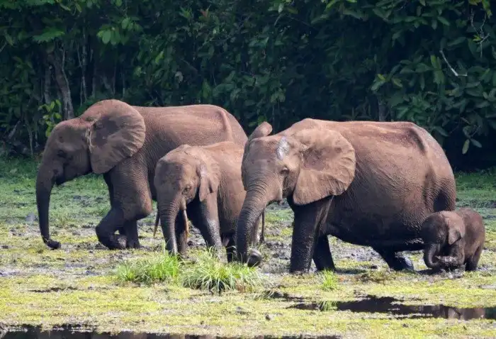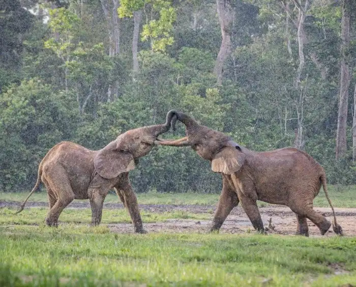 Несмотря на столь выдающуюся родословную, лесной слон — самый маленький в своём семействе: всего-то 2,5 метра в холке и 2700 кило живого веса.