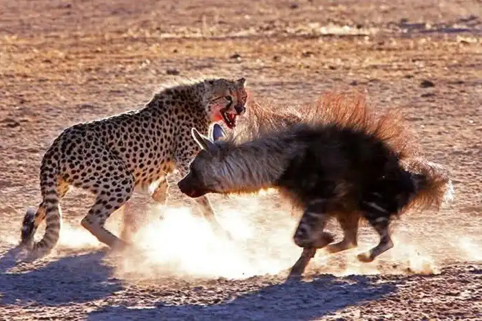 Наши герои не станут гоняться за добычей, вместо этого они отберут мясцо у тех, кто уже сделал всю грязную работу за них. Не каждый потерпит гоп-стоп от панка-полторашки, но, видимо, бойкая гиена не оставляет хищникам выбора. На одной реактивной тяге из наглости и отваги животина умудряется отобрать добычу у гепардов, гиеновых собак и даже леопардов!