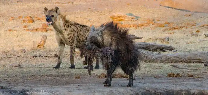 В общем, у нашего друга были все задатки, чтобы стать неплохим хищником. Но будучи истинным нонконформистом, бурая гиена решила пойти против системы и превратилась в настоящего некрофила. Почти весь рацион состоит из мертвечины разной степени свежести, за что бурая гиена удостоилась звания самого крупного сухопутного падальщика.