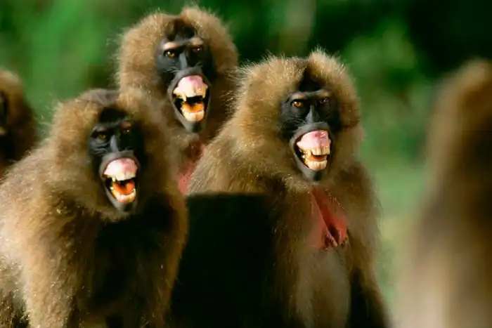 Кто такие бабуины?Типичный бабуин достигает 75 см в длину и весит от 40 до 50 кг. За желтоватую окраску его еще прозвали желтым павианом. Примат обладает вытянутой, похожей на собачью пасть мордой, хорошо развитыми руками с когтями и острое зрение.