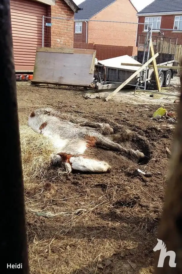 Волонтер увидела на строительной площадке, среди грязи и мусора, казалось бы, мертвую лошадь, но нет, она дышала. Она (волонтер) быстро позвала на помощь, и вот результат: