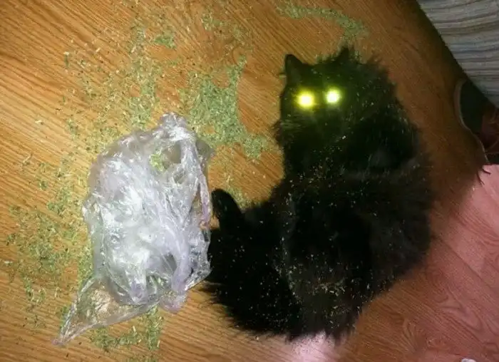 У кошек, наевшихся или перенюхавших травы, даже симптомы очень похожи на похмельные: вялость, тошнота, апатия.