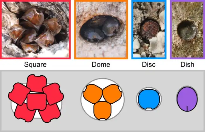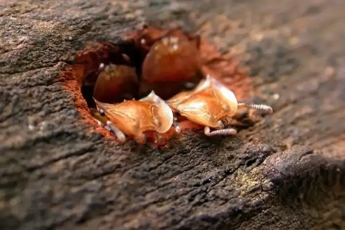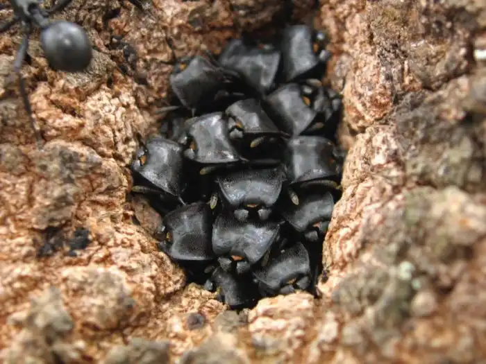 Про поведение я вообще молчу. Назвать их одиночками, коими являются рептилии, язык не поворачивает. Да, колонии наших героев не отличаются большими размерами, но это по сравнению с другими муравьями. В профсоюз под названием «муравейник» входит от 100 до 10 000 членистоногих черепашек. К тому же, живут наши товарищи не на земле, а на дереве. Насекомые заселяют все полости ствола, оставшиеся от предыдущих жильцов: других муравьёв и всякой мелкой шушеры вроде личинок жуков-дровосеков.