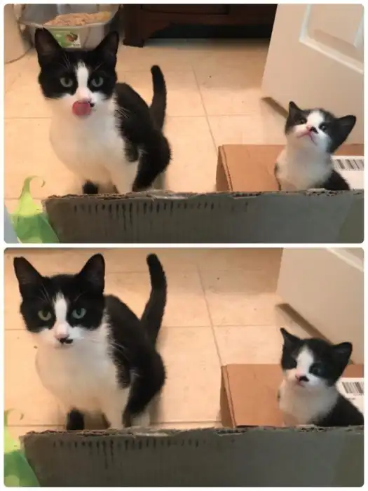 Котенок – первенец этой кошки и он удивительно похож на маманю