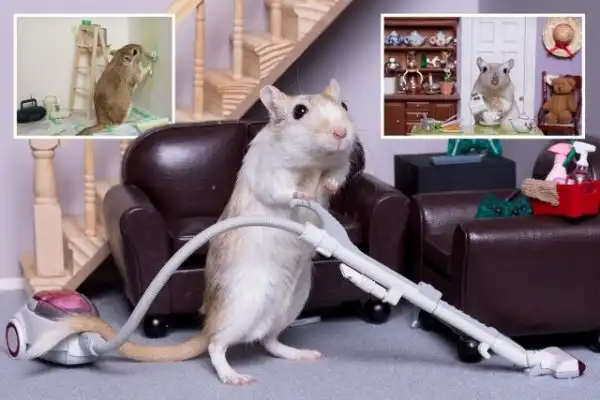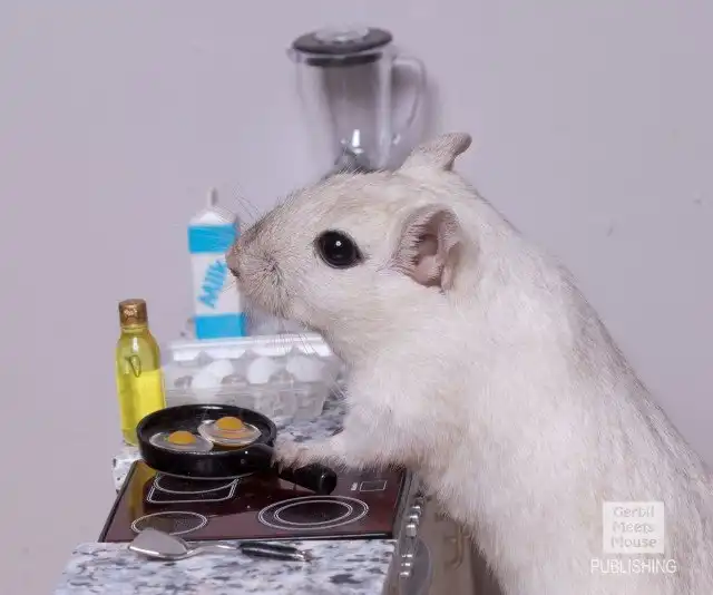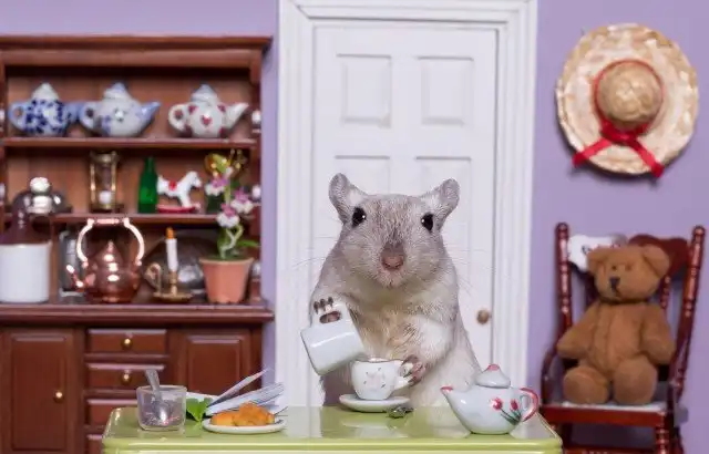 26-летний Бейли Томпсон (Bailey Thompson) из Онтарио, Канада, проводит часы со своими девятью песчанками среди миниатюрных декораций. Мужчина обеспечивает грызунов необходимым инвентарем и ждет пока они не займут хорошую позицию. Затем у фотографа есть примерно полсекунды, чтобы успеть запечатлеть нужный момент. На забавных снимках Бейли песчанки занимаются уборкой, готовят пищу, ремонтируют помещения и делают разные вещи по хозяйству.