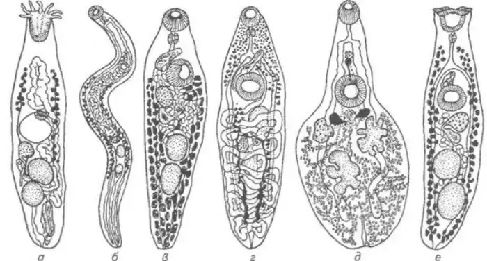 Начинается фильм ужасов с того, что неосторожная водная улитка проглатывает яйцо этого монстра. Личинки червей вылупляются в кишечном тракте брюхоногих и проникают в кровь, после чего расселяются по всему телу. С этого момента несчастный моллюск превращая в фабрику по производству червей. Паразиты отключают улитке половую систему и выкачивают из неё все соки. По истечении 6 недель, черви покидают тело хозяина, оставив его без потомства и сил на выживание.