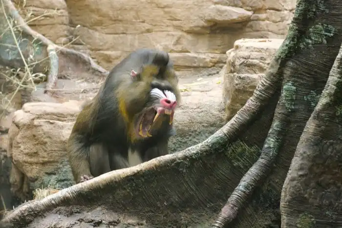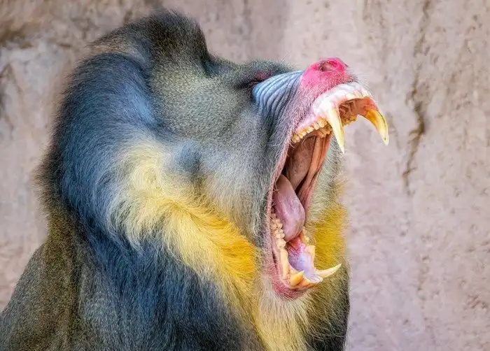 Вообще по своим повадкам животина скорее напоминает гопоту с района, чем мудреца и философа. Бугай с боевым раскрасом и клыками размером с палец одним своим видом вызывает респект и уважение. «Да какой же он бугай» — скажите вы — «этот полурослик всего-то метр в длину и весит не больше школьника» Да, для нас вес в 30 кило — предел мечтаний анорексичек, но среди своих сородичей мандрил — крупнейший представитель нечеловекообразных обезьян!