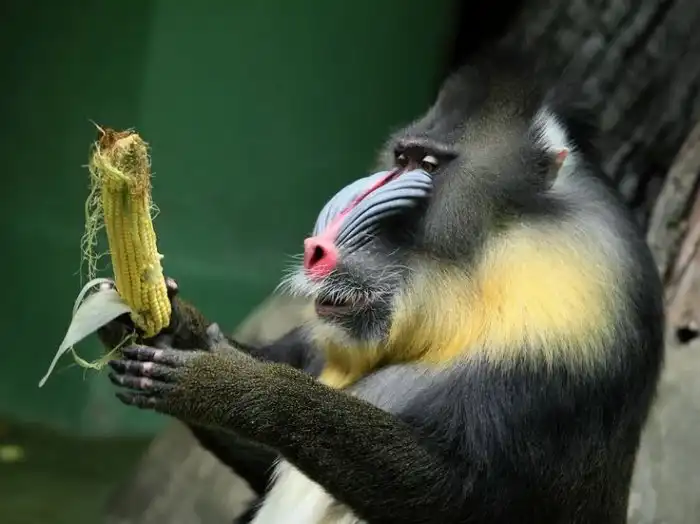 Благо, что сами мандрилы не мясоеды. Несмотря на длиннющие клыки и склочный характер, 98% рациона разукрашенных обезьян состоит из веганских вкусняшек. Основа меню криминального авторитета джунглей — фруктики, листики, стебельки и прочая растительная шушера.