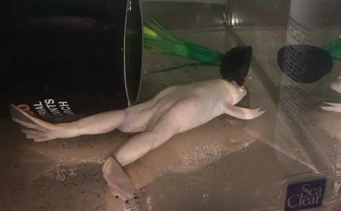 Однако это не значит, что животину можно содержать в тазике! Как и любой питомец, от неправильного обращения ксенопус может заболеть и помереть. Самая частый их недуг — водянка, от которой амфибий распирает как не в себя.