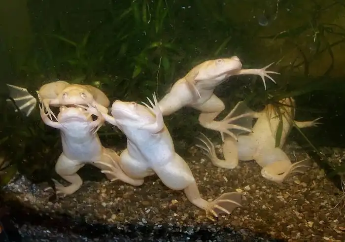 Неприхотливость в содержании и неимоверная плодовитость позволили вывести ксенопусов из мрачных застенков лабораторий в аквариумы любителей. Лягушка крайне неприхотлива, ест почти всё, что предложите и не требует великих навыков содержания холоднокровных.